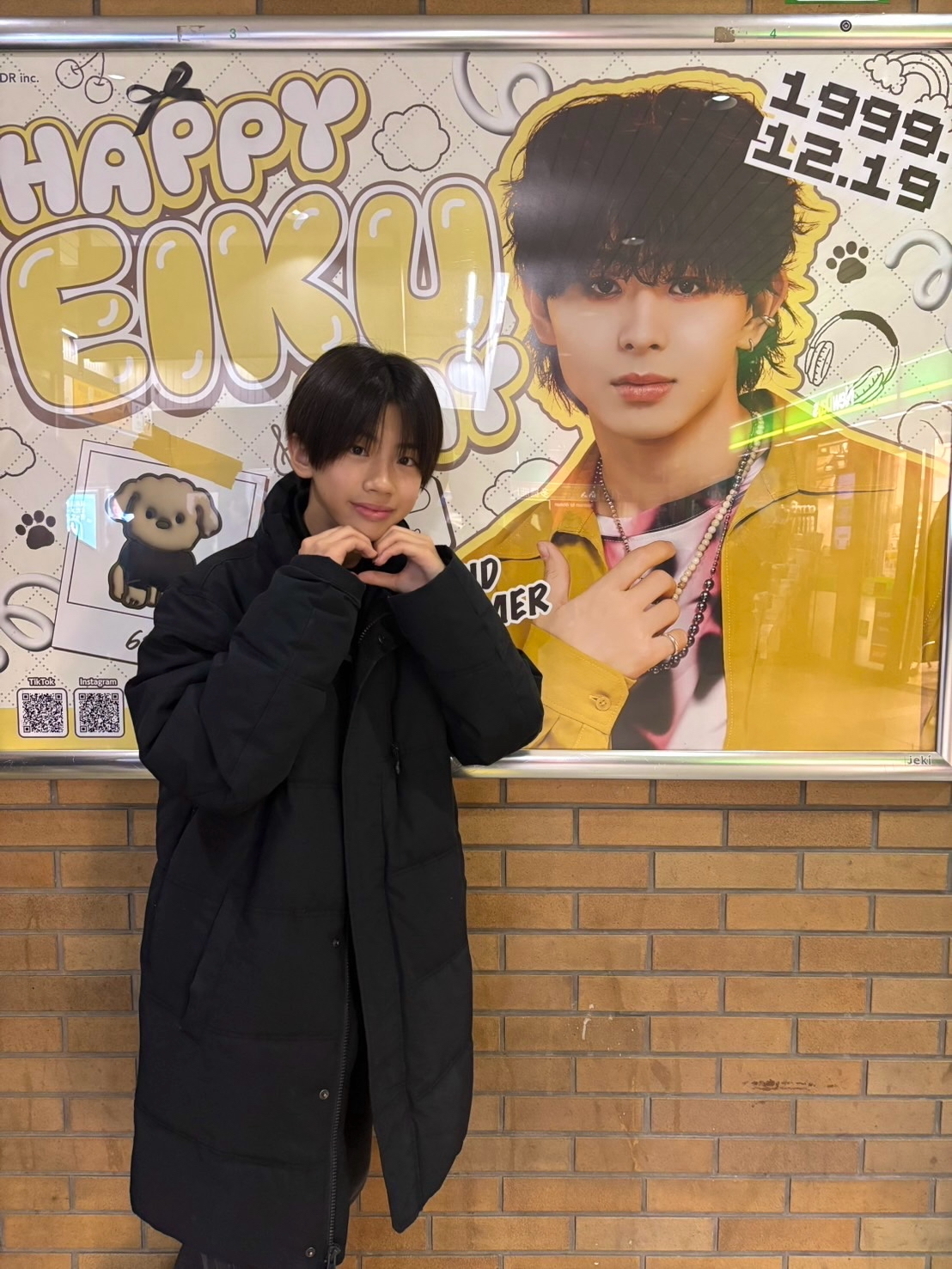 恵比寿駅に大好きなEIKUさんのお誕生日お祝いの看板がありました❣️えいとに写真撮ってもらったよ!