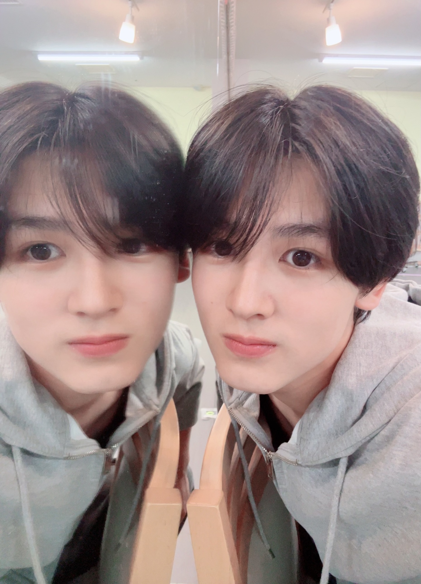 鏡に映るとちょっとちがう顔にみえるなー!!違和感!!!