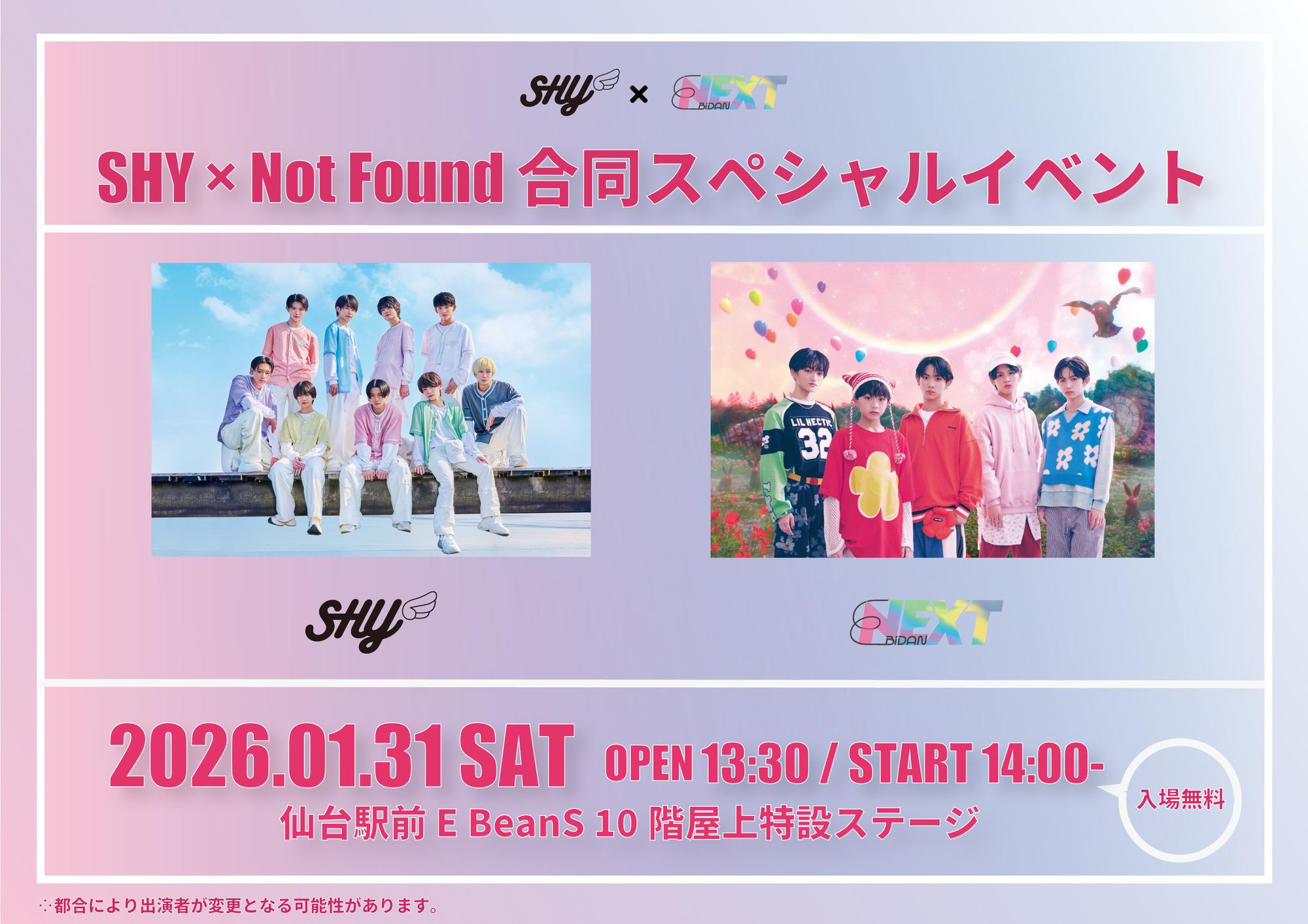 【宮城】SHY×Not Found合同スペシャルイベント 物販・特典会情報公開!