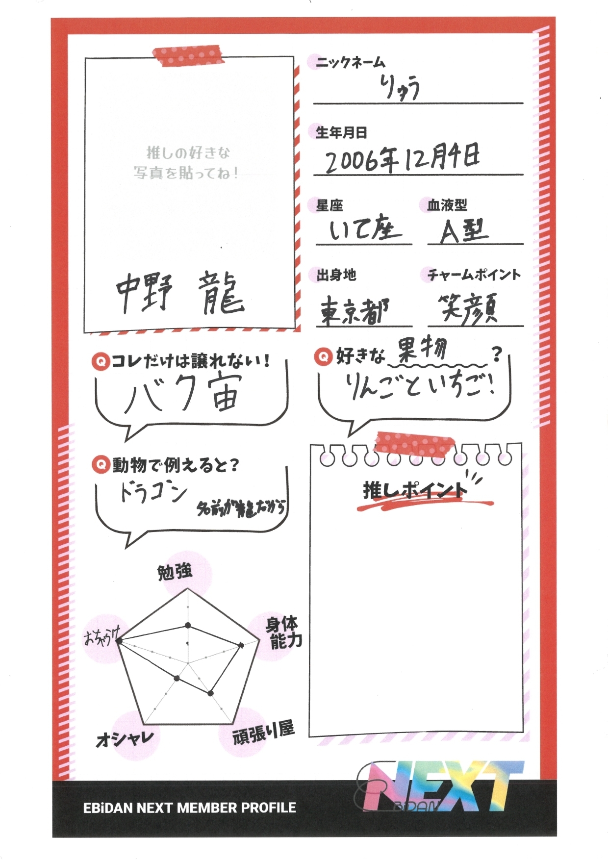 2023.12.18 本人直筆ステマシート 中野龍 推しの好きな写真と推しポイントを加えて あなただけの オリジナルステマシートを作ろう! [SNS推奨タグ🔖] #EBiDANNEXTオリジナルステマシート #EBiDANNEXT #推しの名前 ダウンロード
