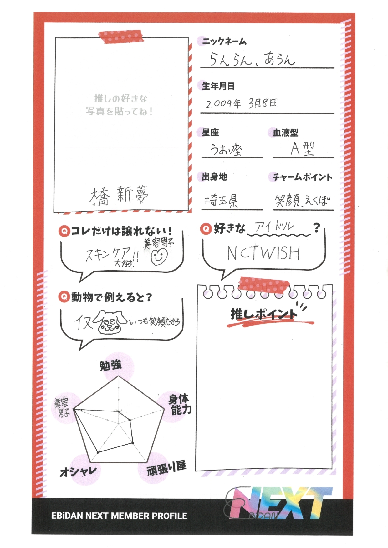 2024.10.01 本人直筆ステマシート 橋 新夢 推しの好きな写真と推しポイントを加えて あなただけの オリジナルステマシートを作ろう! [SNS推奨タグ🔖] #EBiDANNEXTオリジナルステマシート #EBiDANNEXT #推しの名前 ダウンロード
