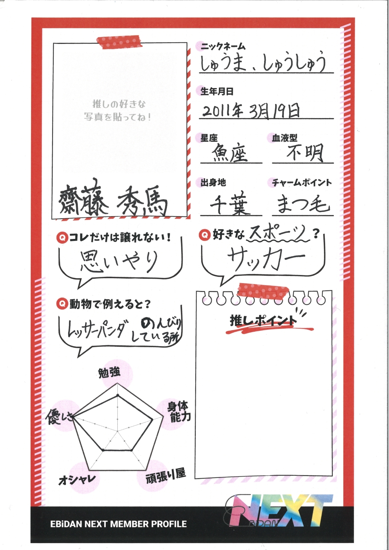 2024.10.17 本人直筆ステマシート 齋藤 秀馬 推しの好きな写真と推しポイントを加えて あなただけの オリジナルステマシートを作ろう! [SNS推奨タグ🔖] #EBiDANNEXTオリジナルステマシート #EBiDANNEXT #推しの名前 ダウンロード