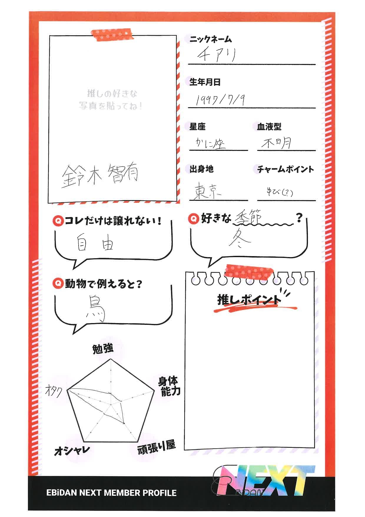 2025.04.10 本人直筆ステマシート 鈴木 智有 推しの好きな写真と推しポイントを加えて あなただけの オリジナルステマシートを作ろう! [SNS推奨タグ🔖] #EBiDANNEXTオリジナルステマシート #EBiDANNEXT #推しの名前 ダウンロード